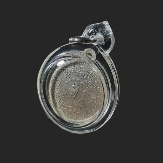 เหรียญพระพุทธบาท ปี 2511 เนื้อเงิน พิมพ์กลาง ขนาด 1.8 ซม. จำนวนสร้าง 100 องค์ 1 ใน 100 องค์ ท่านเจ้าคุณนรฯ อธิษฐานจิตปลุกเสก ออกวัดเขาบางทราย จ.ชลบุรี เลี่ยมกันน้ำ สภาพสวยเดิมเก่าเก็บ ผิวเดิมๆ ไม่มีการล้างผิวหรือศัลยกรรมใดๆ |