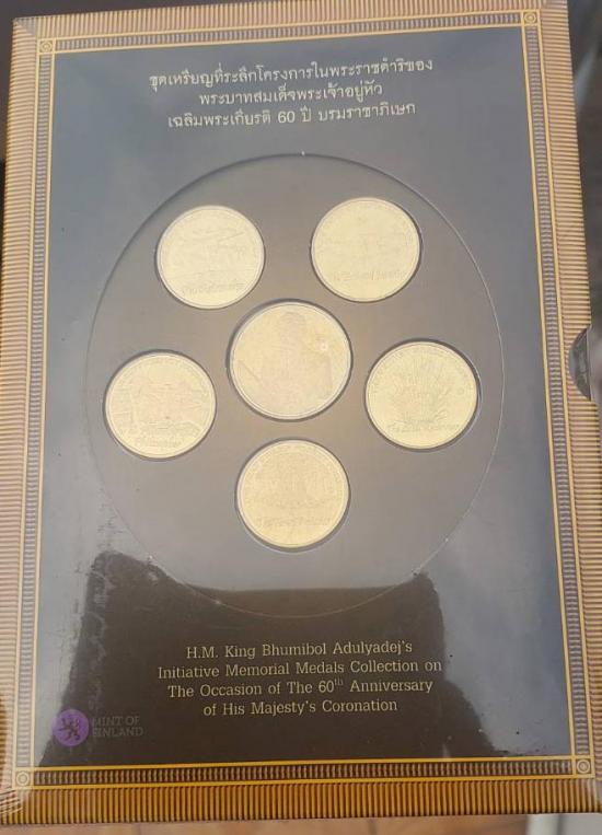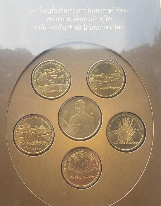ชุดเหรียญที่ระลึกโครงการพระราชดำริเฉลิมพระเกียรติ 60 ปี บรมราชาภิเษก ผลิตที่ประเทศฟินแลนด์