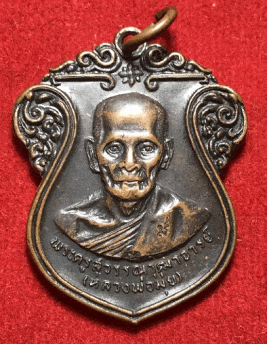 เหรียญเสมาหลวงพ่อมุ่ย ปี 2516 รุ่นสร้างศาลาการเปรียญ เนื้อทองแดง วัดดอนไร่ จังหวัดสุพรรณบุรี
