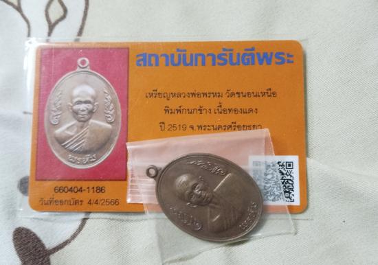 เหรียญกนกข้าง หลวงพ่อพรหม วัดขนอนเหนือ ปี2519 เนื้อทองแดงครับ