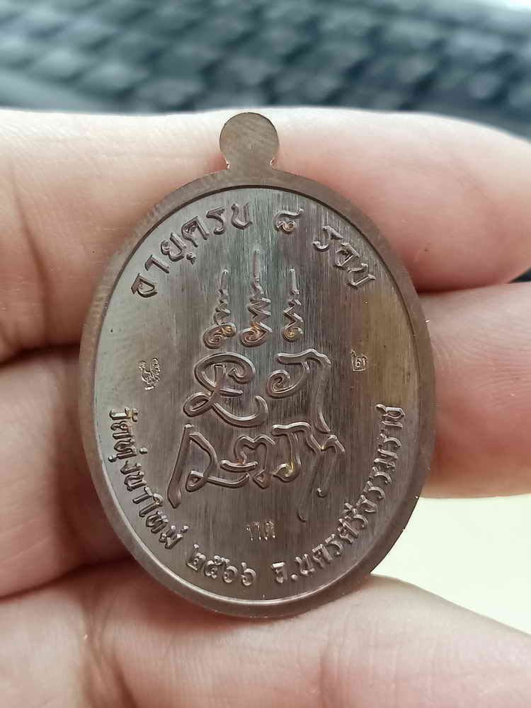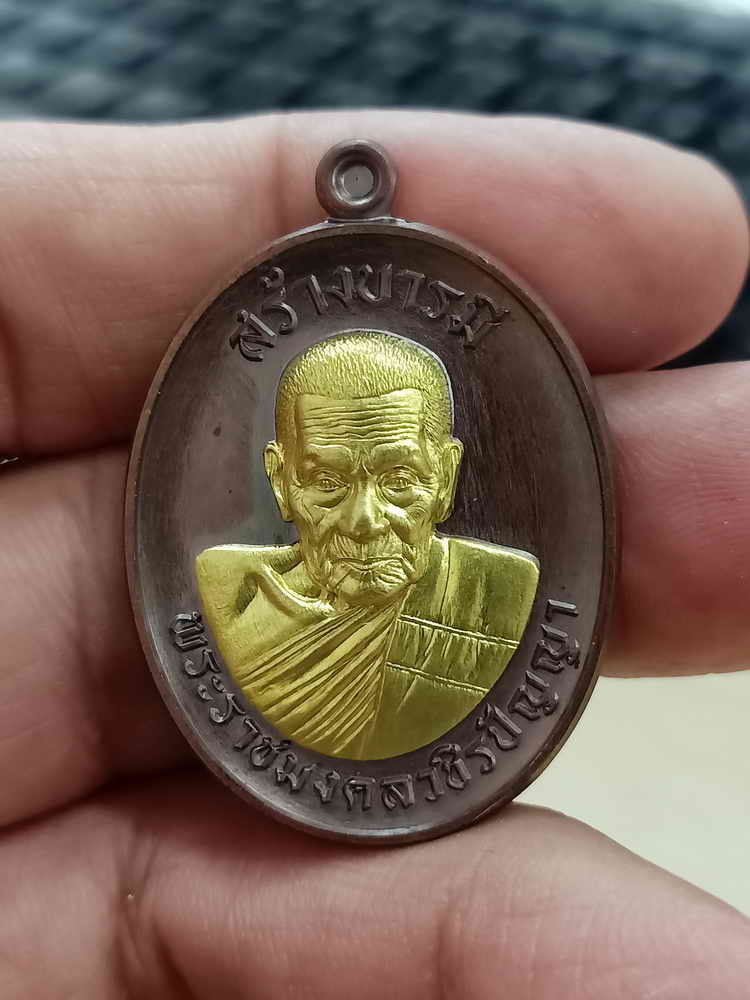 หรียญสร้างบารมี หลวงปู่อิ่ม วัดทุ่งนาใหม่ จ.นครศรีธรรมราช 2567 ทองแดง หน้ากากชุบทอง หมายเลข 2 กล่องเดิม |
