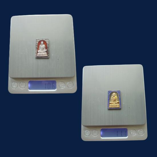 เหรียญแสตมป์ 8รอย หลวงปู่คร่ำ เนื้อเงินหน้ากากทองคำ