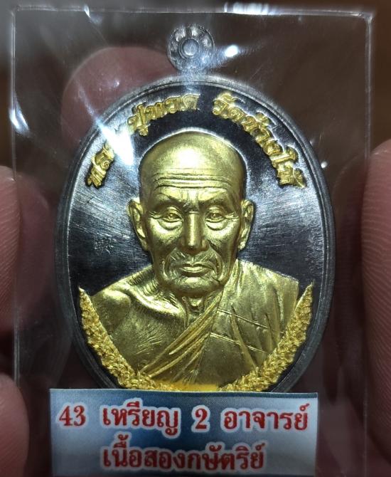 เหรียญ2อาจารย์ หลวงปู่ทวด-หลวงปู่ดู่ รุ่นเจ้าสัวพันล้าน (บอย ท่าพระจันทร์) เนื้อสองกษัตริย์ โค๊ตเลข ๒๔๑๐ พร้อมกล่องเดิม |