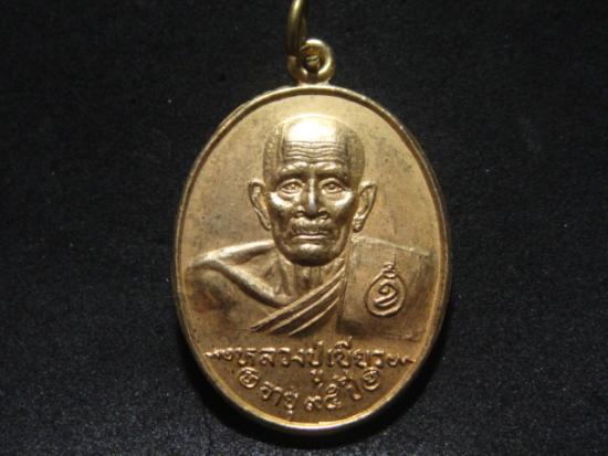 วัดใจเคาะเดียว.......100.......เหรียญหลวงปู่เขียว วัดหรงบน ๙๕ ปี ปี2533 กะไหล่ทอง สวย |
