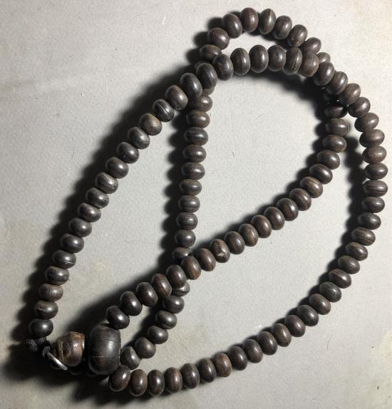 สร้อยประคำไม้แกะจุ่มรักเก่ามากอายุร้อยปี ไม่ทราบที่