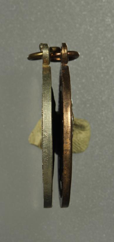 ลักษณะของเหรียญรูปไข่ มีขอบและหูห่วง
