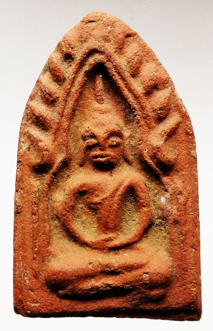 พระขุนแผนปลัดทวี พิมพ์ทรงปางสมาธิ เนื้อดิน หลังลายผ้า ปีพ.ศ.2490