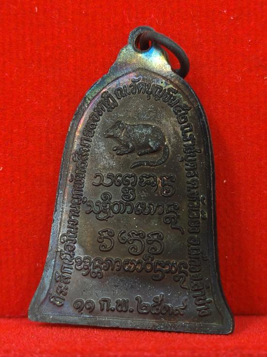 เคาะเดียว+ 2เหรียญ ระฆังหลังหนู หลวงพ่อเกษม เขมโก (ที่ระลึกงานในงานผูกพัทธสีมา วัดบุญยืน) ปี2539 เนื้อทองแดง |