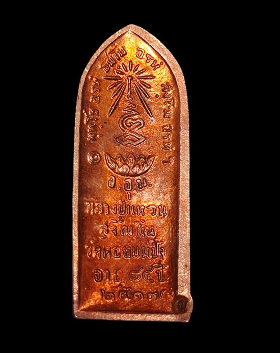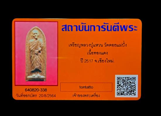 เหรียญรางปืน หลวงปู่แหวน สุจิณโณ เนื้อทองแดง ผิวไฟ ตอกโค๊ต ปี2517 พร้อมบัตรG |