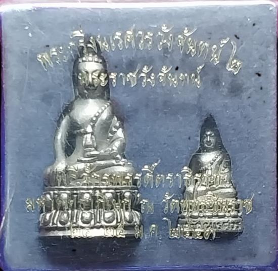พระกริ่งนเรศวรสนามจันทร์2+พระชัยวัฒน์ เนื้อทองขาว พร้อมกล่อง(ฝากล่องมีรอยร้าวนิดหนึ่ง) |