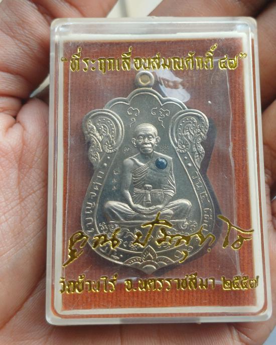 เคาะเดียวเเดง เหรียญหลวงพ่อคูณ อัลปาก้า ฝัง พลอยไพลิน |