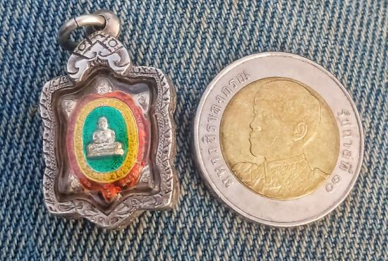 พญาเต่าเรือน หลวงปู่หลิว เนื้อเงิน รุ่น อุดมทรัพย์ ปี ๖๐ วัดไร่แตงทอง จ. นครปฐม พร้อมกล่องเดิมจากวัด เลี่ยมกรอบเงิน |