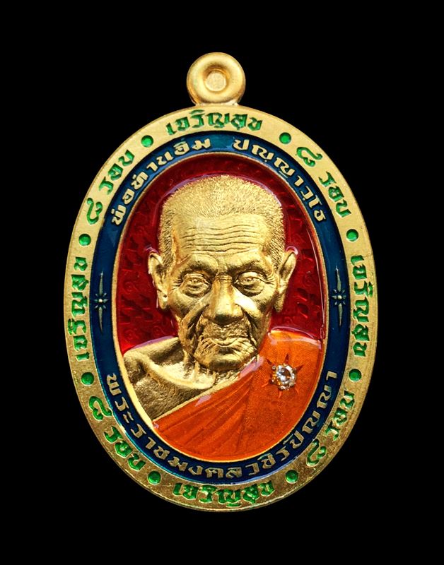 +!!เคาะเดียวllดง ตลอดสาย!!+ เหรียญ เจริญสุข หลวงปู่อิ่ม ปญฺญาวุโธ วัดทุ่งนาใหม่ จ.นครศรีธรรมราช ปี67 (เนื้อกะไหล่ทอง ลงยา 3สี ฝังเพชร เลขสวย 46) พร้อมกล่องครับ