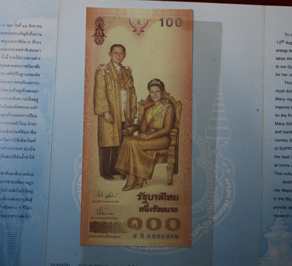 ธนบัตรที่ระลึก(ใส่ซองปกอ่อน)เฉลิมพระเกียรติพระราชชนนีพันปีหลวงพระชนมพรรษา 6รอบ ชนิดราคา 100 บาท. |