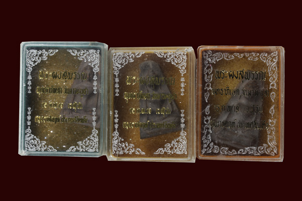 พระผงสุพรรณ ปี 19 ปลุกเสกประเทศอินเดีย เนื้อน้ำตาลเทา (นิยม) พร้อมกล่องเดิม 3กล่อง