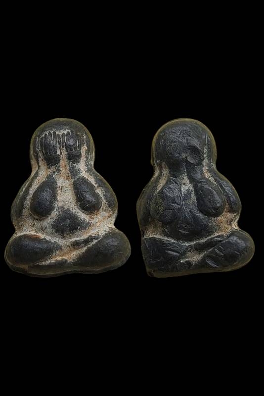 (2 องค์ มี 1 องค์ชำรุด )พระปิดตา หลวงพ่อน้อย วัดศรีษะทอง พิมพ์ 2 หน้าหลังอุ เนื้อตะกั่ว ปี 2478
