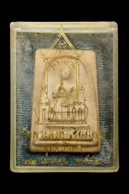 จัดสร้างพร้อมกับพระผงรูปเหมือนครูบาเจ้าศรีวิชัย หลังสิงห์ ซึ่งเป็นสัญลักษณ์ของวัดพระสิงห์ โดยเข้าพิธีพุทธาภิเษก พร้อมกับพิธีพระสมเด็จ 100 ปี วัดระฆังฯ กรุงเทพมหานคร พ.ศ.2515 ที่วัดระฆังโฆสิตาราม และได้นำกลับมาทำพิธีพุทธาภิเษกพิธีใหญ่ ในวันที่ 12 เมษายน 2516 ณ วัดพระสิงห์ จ.เชียงใหม่ โดยมีสุดยอดพระเกจิอาจารย์ในยุคนั้นร่วมพิธี เป็นพระดี ปีลึก พิธีใหญ่ ที่ควรค่าแก่การบูชา