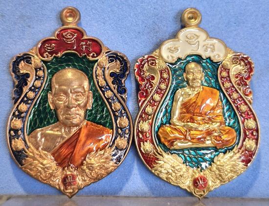 เหรียญเสมา หลวงพ่อพัฒน์วัดห้วยด้วน รุ่นรวย เหนือ รวย เหรียญที่ 1 เป็นเสมาเต็มองค์ เนื้อทองฝาบาตร ลงยาสามสี แดงเขียวขาวลงยาจีวร Number 14 เลขต้นๆ เหรียญสวยมาก เหรียญที่ 2 เสมาครึ่งองค์ ลงยาสามสี น้ำเงินแดงเขียวลงยาจีวรเนื้อทองแดงผิวไฟ ด้านหลังเป็นเรือสำเภา ขนเงินขนทอง Number 464 เลข หาม ได้เงินได้ทอง มาพร้อมกล่องเดิม พี่ๆๆท่านใดชอบเชิญครับ |
