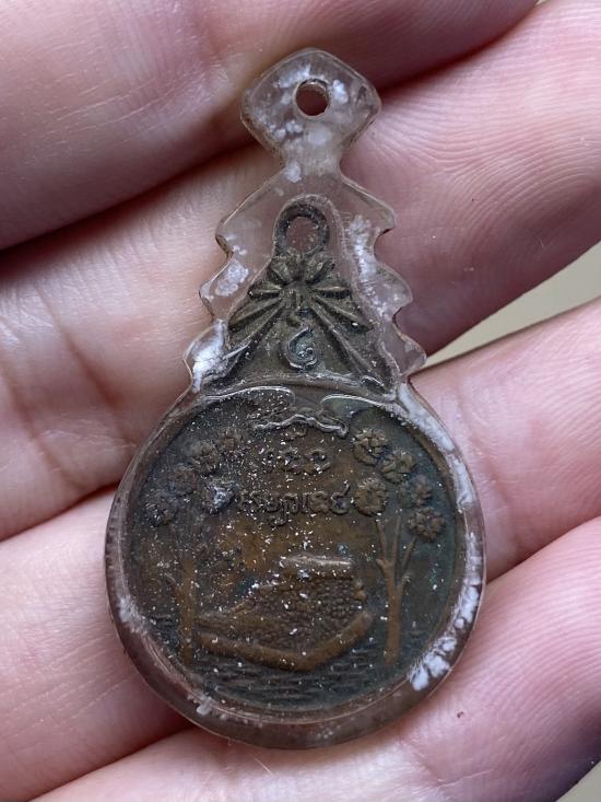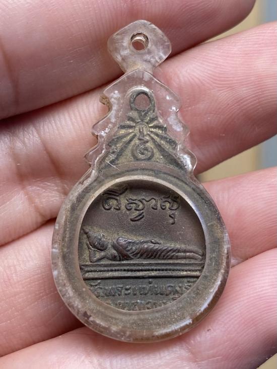 เหรียญพระแท่น หลังพระนอนปางไสยาสน์ วัดพระแท่นดงรัง กาญจนบุรี เลี่ยมโบราณเก่าเดิมๆ |
