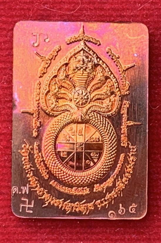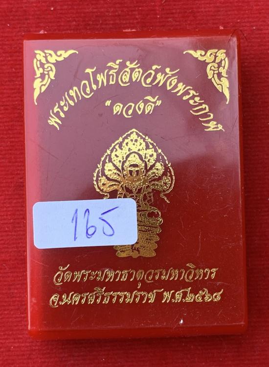 เหรียญพระโพธิสัตว์พังพกาฬ ดวงดี วัดพระมหาธาตุวรวิหาร จ.นครศรีธรรมราช เนื้อทองแดงผิวไฟลงยาดำ หมายเลข ๑๖๕ |