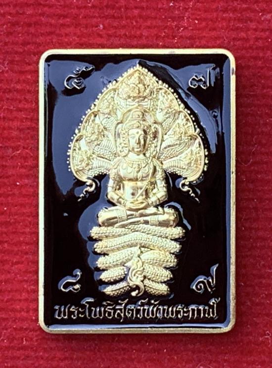 เหรียญพระโพธิสัตว์พังพกาฬ ดวงดี วัดพระมหาธาตุวรวิหาร จ.นครศรีธรรมราช เนื้อทองฝาบาตรลงยาดำ หมายเลข ๑๘๒ |