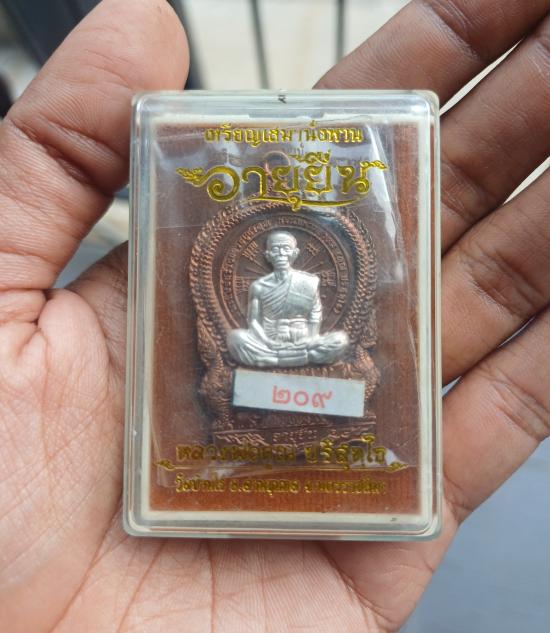 หลวงพ่อคูณ เหรียญเสมานั่งพาน รุ่นอายุยืน หลังหนุมานเชิญธง รุ่นแรก หน้ากากเงิน เลข209 สร้างน้อยหายากครับ พร้อมกล่องเดิม |