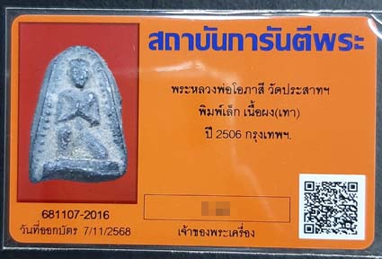 หลวงพ่อโอภาสี วัดประสาทฯ พิมพ์เล็ก เนื้อผง(เทา) ปี2506 กทม. พร้อมบัตรรับรองครับ |