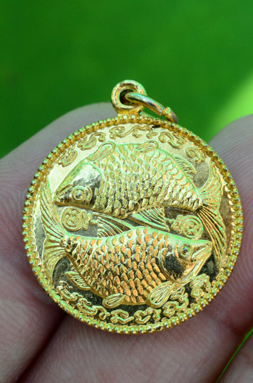 เหรียญปลาตะเพียนคู่นำโชค ครูบาดวงดี วัดท่าจำปี จ. เชียงใหม่ รุ่นแรก ปี 2525 เนื้อกะไหล่เงิน เชื่อกันว่าเมื่อนำพกติดตัว จะเกิดเป็นโภคทรัพย์เงินทองไหลมาเทมา ค้าขายเจริญรุ่งเรือง อีกทั้งเป็นเมตตามหานิยม |