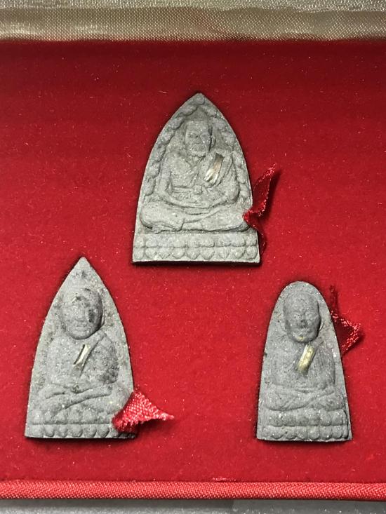 หลวงปู่ทวด วัดช้างให้ รุ่น พุทธคุณกุญชร ชุด 3 องค์ ปี 2541 ตะกรุดเงิน ตอกโค๊ต สภาพสวย กล่องเดิม หายาก พิธีใหญ่ |