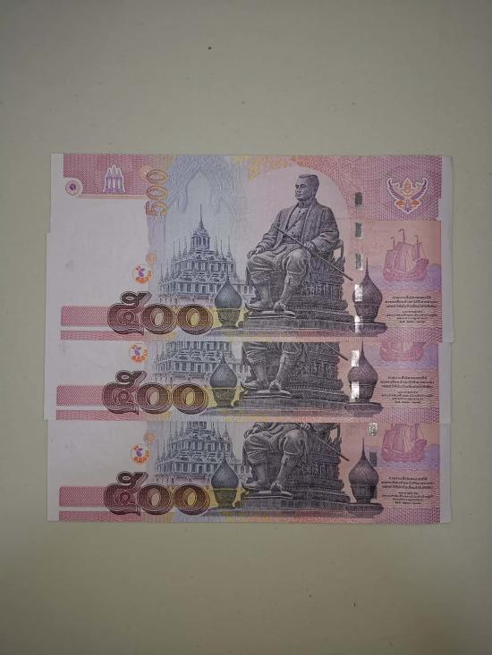 ธนบัตรรักาลที่ 9 ไม่ผ่านการใช้ ฉบับละ 500 บาท รวม 3 ฉบับ