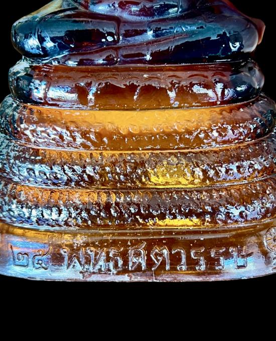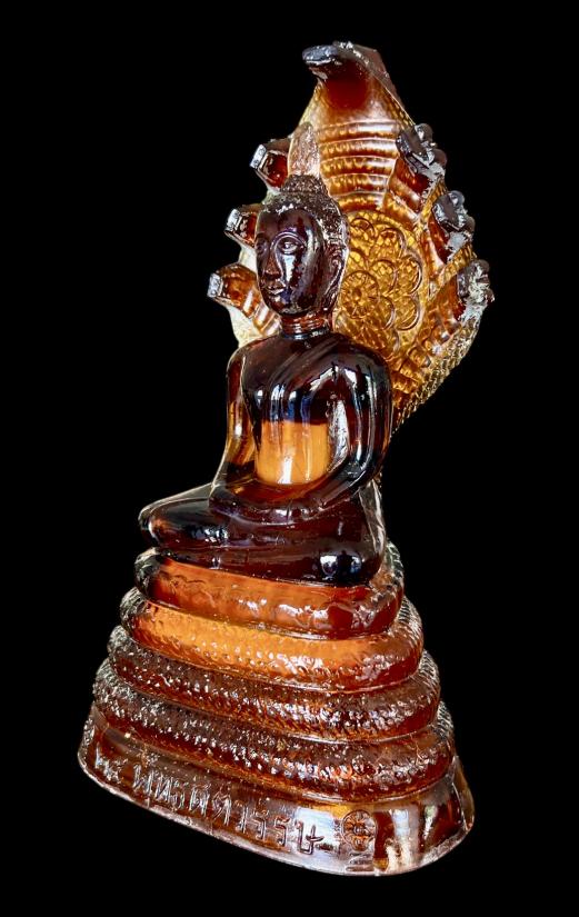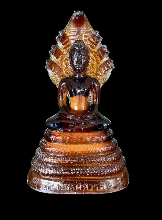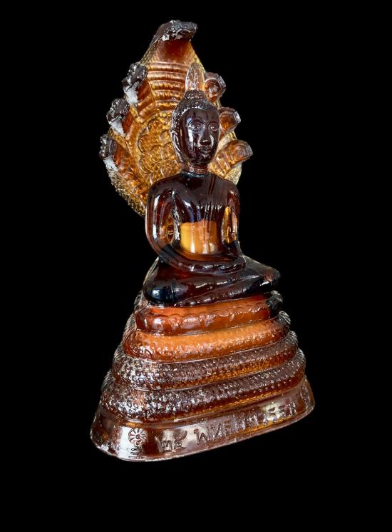 พระแก้วพิธี 25 พุทธศตวรรษ ปางนาคปรก บล็อค JAPAN เนื้อแก้วสีน้ำผึ้ง พิมพ์ใหญ่ สภาพสวยปลายเกศบิ่นนิดนึ่งตามภาพด้านล่าง นอกนั้นสมบูรณ์ครับ หน้าตัก 4 นิ้ว สูง 11 นิ้ว