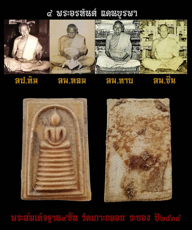 พระสมเด็จฐาน๙ชั้น เนื้อผงเคลือบแลคเกอร์ วัดเกาะกลอย ระยอง หลวงปู่ทิม หลวงพ่อหอม หลวงพ่อทาบ หลวงพ่อชื่น คณาจารย์สายระยอง-ชลบุรี ร่วมเสก ปี2514 |