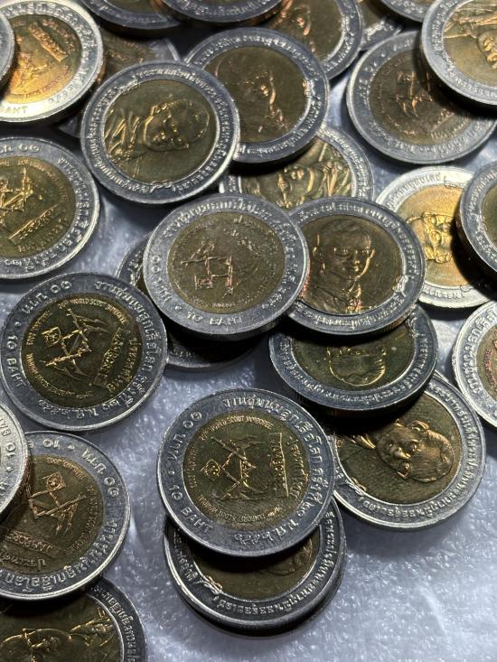 เหรียญ 10 บาท รัชกาลที่9 ที่ระลึกงานชุมนุมลูกเสือโลก ครั้งที่ 20 พศ.2546 พร้อมถุงเดิม จำนวน 82 เหรียญ สภาพสวยตามรูป