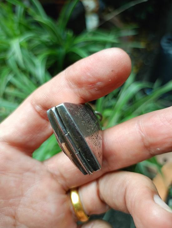ตลับเงินเปอร์เซ็นต์สูง สั่งตัด แกะลายยันต์ด้านหลังใส่เหรียญระฆังหลวงพ่อพรหม วัดช่องแค |