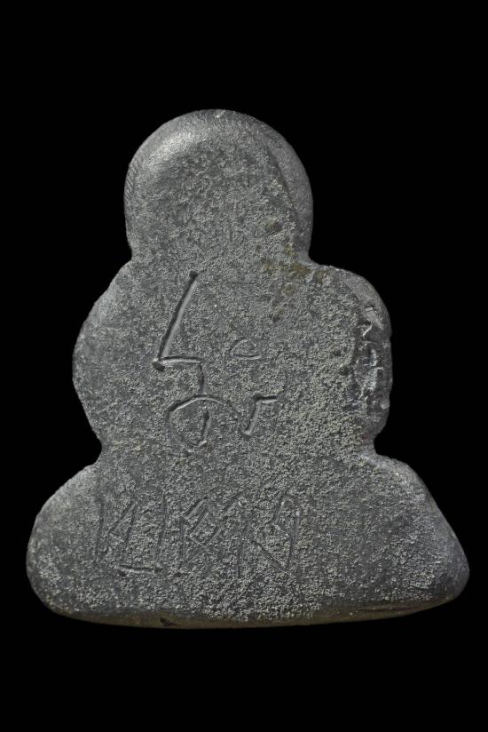 พระปิดตา เนื้อตะกั่วหลังจารอักขระ และคำว่า "เบตง" มีคราบจากการเก่าเก็บ