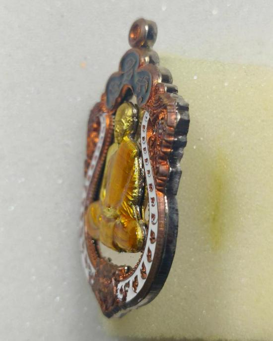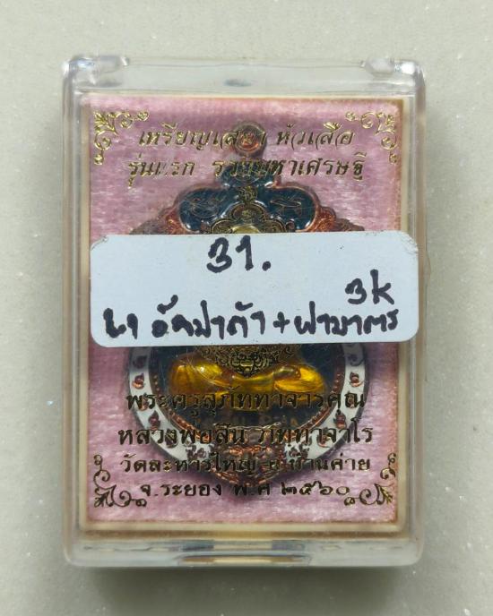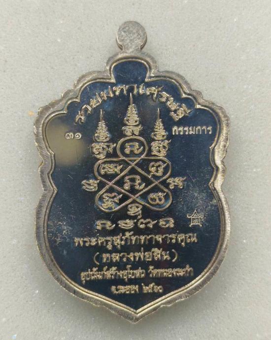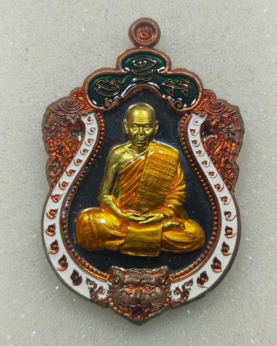 เสมาหัวเสือรุ่นแรก รวยมหาเศรษฐี(กรรมการ)เนื้ออัลปาก้าหน้าฝาบาตร ขอบลงยา 3 สี หลวงพ่อสิน วัดละหารใหญ่ มีกล่อง แดงเคาะแรก |