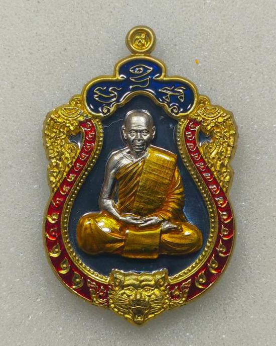 เสมาหัวเสือรุ่นแรก รวยมหาเศรษฐี(กรรมการ)เนื้อแร่หน้าอัลปาก้าขอบฝาบาตรลงยา 3 สี หลวงพ่อสิน วัดละหารใหญ่ มีกล่อง แดงเคาะแรก |