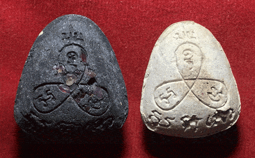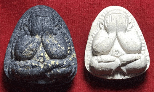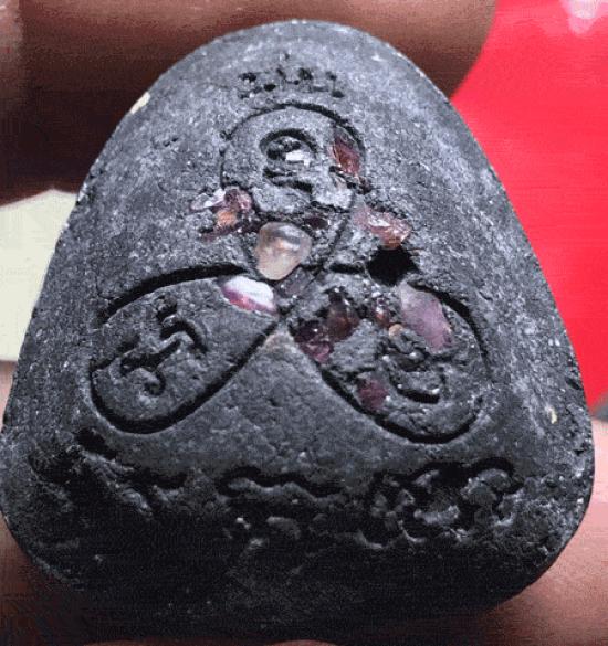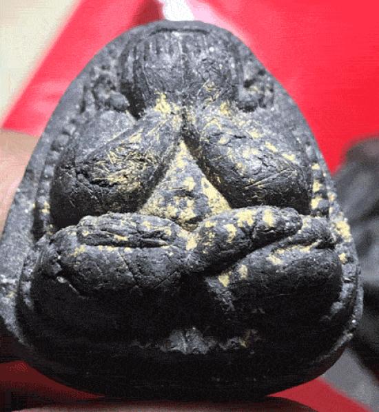 พระปิดตาปุ้มปุ้ย หลวงปู่ม่น วัดเนินตามาก จ.ชลบุรี เนื้อว่านใบลานผสมเส้นเกศา หลังโรยพลอย
