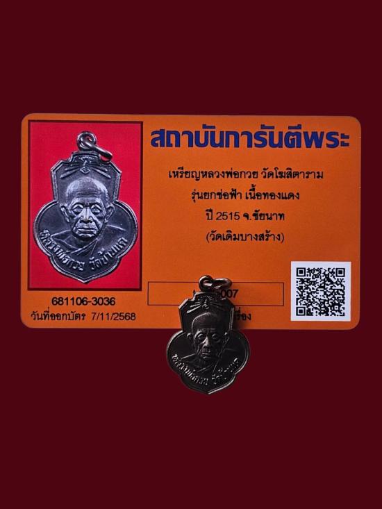 ** สวยมากๆ มาพร้อมบัตร** เหรียญหลวงพ่อกวย ปี 2515 รุ่น ยกช่อฟ้า วัดเดิมบาง เนื้อทองแดงรมดำ บล็อคนิยม ไหล่จุด หูขีด สวยครับ เคาะเดียว