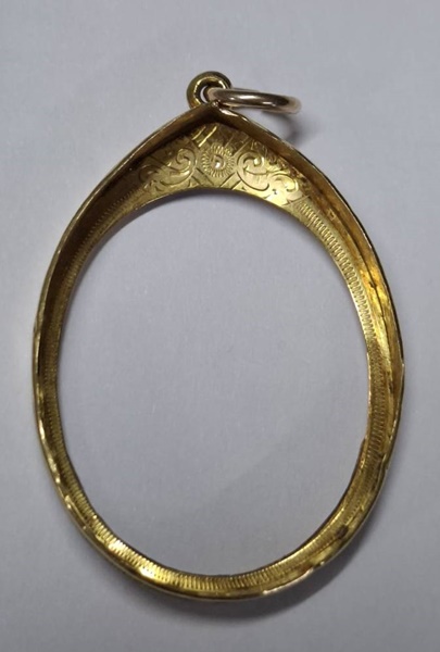 ***กรอบมือ2 ทองคำแท้ ลงยา สวยๆ*** ยกซุ้ม บน-ล่าง สำหรับ เหรียญรูปไข่ทั่วไป