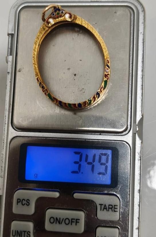 น้ำหนักทอง 3.49กรัม กรอบสภาพสวยๆ ไม่ฉีกไม่ขาด นำไปเลี่ยมได้เลย ค่ะ
