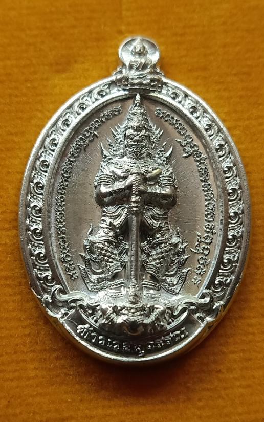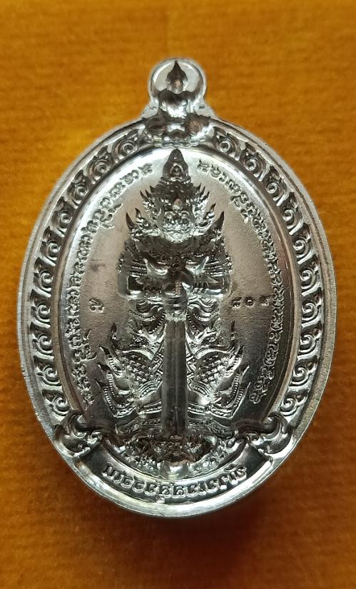ท้าวเวสสุวรรณ ครูบาจันทร์ วัดน้ำแป้ง อ.ปง จ.พะเยา เนื้อดีบุกหลังแบบ |