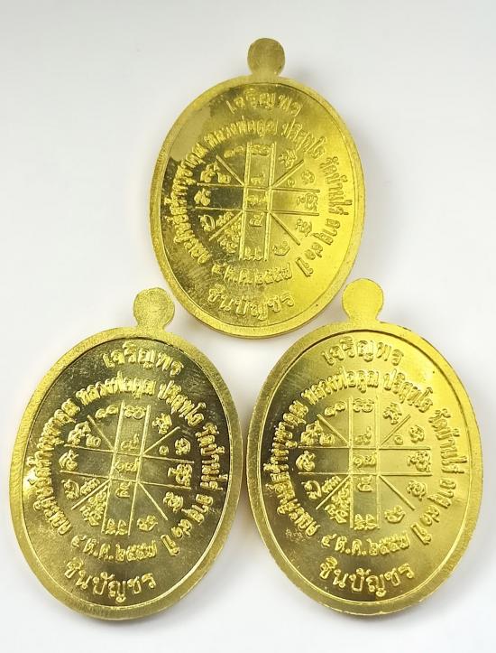 (จัดชุด3องค์)เหรียญ"เจริญพร ชินบัญชร" หลวงพ่อคูณ วัดบ้านไร่ ปี57 เนื้อทองฝาบาตร เบอร์ 703/1820/3008 พร้อมกล่องครับ (S)