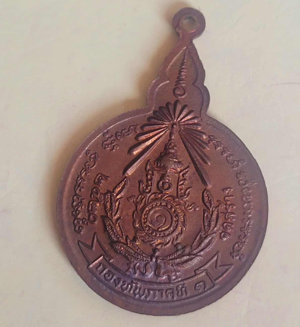 เหรียญหลวงปู่แหวน วัดดอยแม่ปั๋ง เชียงใหม่ รุ่นครอบจักรวาล สร้างโดย กองทัพภาคที่ 1 เนื้อทองแดงปี 2520 เหรียญไม่ผ่านการใช้ |