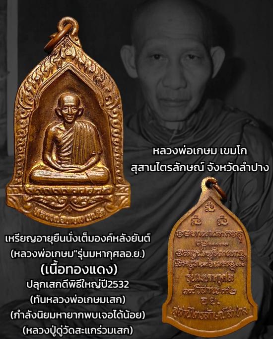 เหรียญหลวงพ่อเกษม รุ่นมหากุศล (อย.จัดสร้าง) ปี 2532 หลวงปู่ดู่ วัดสะแก ร่วมปลุกเสก เนื้อโลหะผสม |