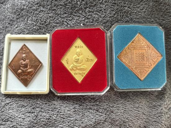 @@@ 3 องค์ @@@ หลวงปู่เอี่ยม 2 องค์ เหรียญพระนเรศวร 1 องค์ วัดสะพานสูง นนทบุรี พร้อมกล่องเดิมครับ |