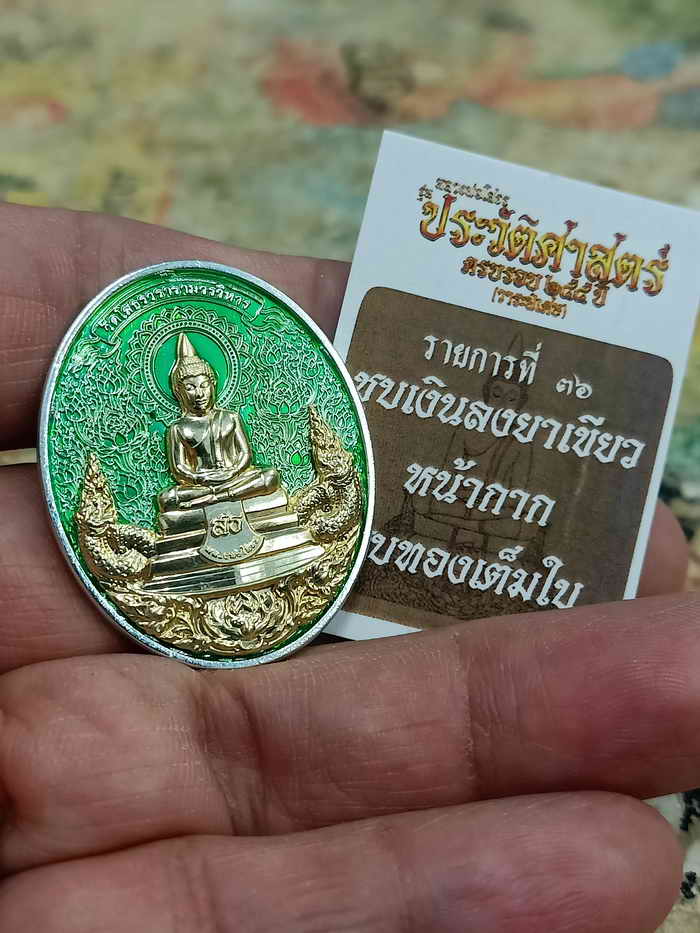 วัดใจ 100 เหรียญหลวงพ่อโสธร รุ่นประวัติศาสตร์หลวงพ่อโสธร ครบ 255 ปี วัดโสธรวราราม วรวิหาร ฉะเชิงเทรา ชุบเงิน ลงยาเขียว หน้ากากชุบทองเต็มใบ หมายเลข 32 กล่องเดิม |