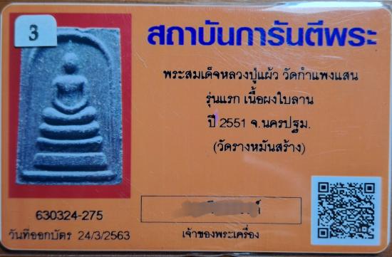 800 พระสมเด็จหลวงปู่แผ้ว วัดกำแพงแสน รุ่นแรก เนื้อผงใบลาน ปี 2551 จ.นครปฐม. (วัดรางหมันสร้าง) |