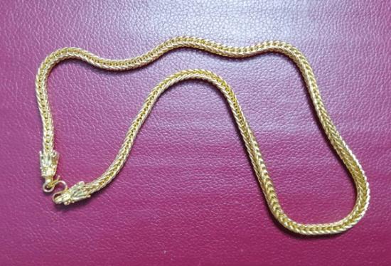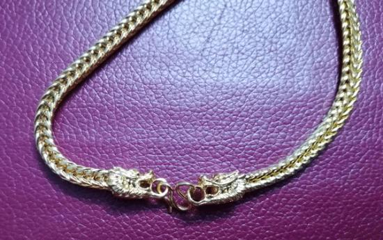 สร้อยคอชุบเศษทองเยาวราช สร้อยทองเหมือนแท้ ลายสี่เสา เส้นใหญ่ๆ ขนาด 5 บาท หัวมังกร ไม่ลอกไม่ดำ ฝีมือช่างจากเยาวราช ความยาว 20 นิ้ว (กท.89) |
