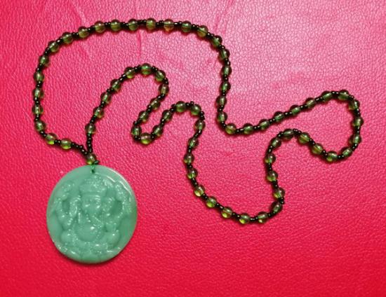 สร้อยคอหินสีหยกพระพิฆเนศ ตัวสร้อยเม็ดหยกชินเจียงเขียว ยาว 15 นิ้ว องค์พระพิฆเนศ ขนาดใหญ่ กว้าง 4.5 ซม. สูง 4.5 ซม. หนาประมาณ 3 มิล (กท.82)